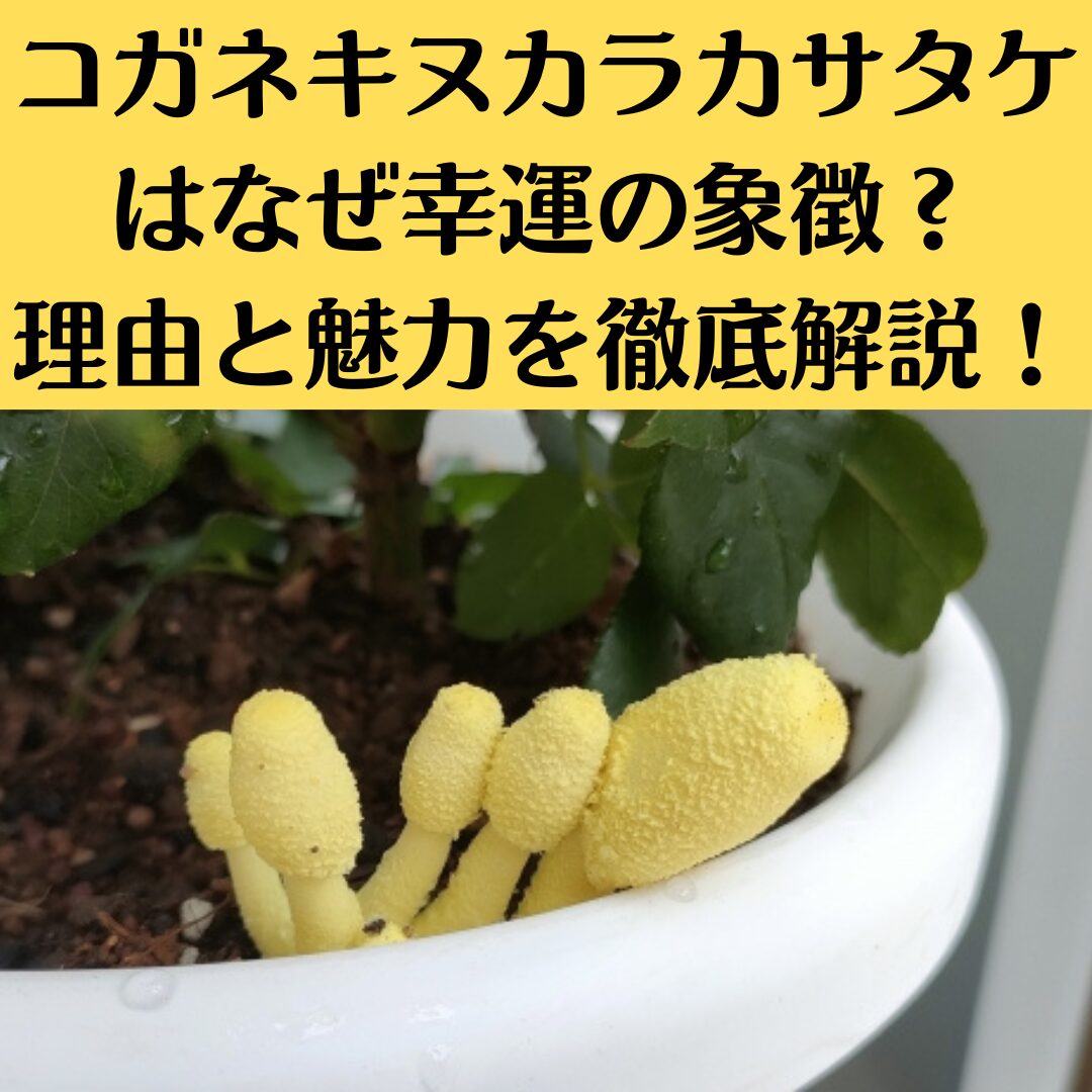 - コガネキヌカラカサタケは黄色いキノコで、「幸運の象徴」とされる