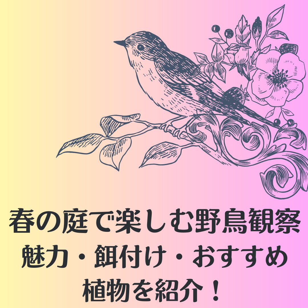 春は、庭で野鳥を観察するのに最適な季節です。鳥たちが活発に動き回り、美しいさえずりを聞かせてくれます。庭にエサや水場を用意し、鳥が好む植物を植えることで、多くの野鳥を呼び込むことができます。